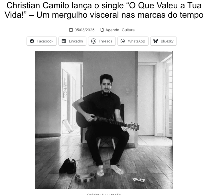 O cantor e compositor Christian Camilo lançou hoje seu novo single, “O Que Valeu a Tua Vida”, uma canção que atravessa as sombras da memória para questionar o que, de fato, deixa cicatrizes e significado em uma vida inteira.